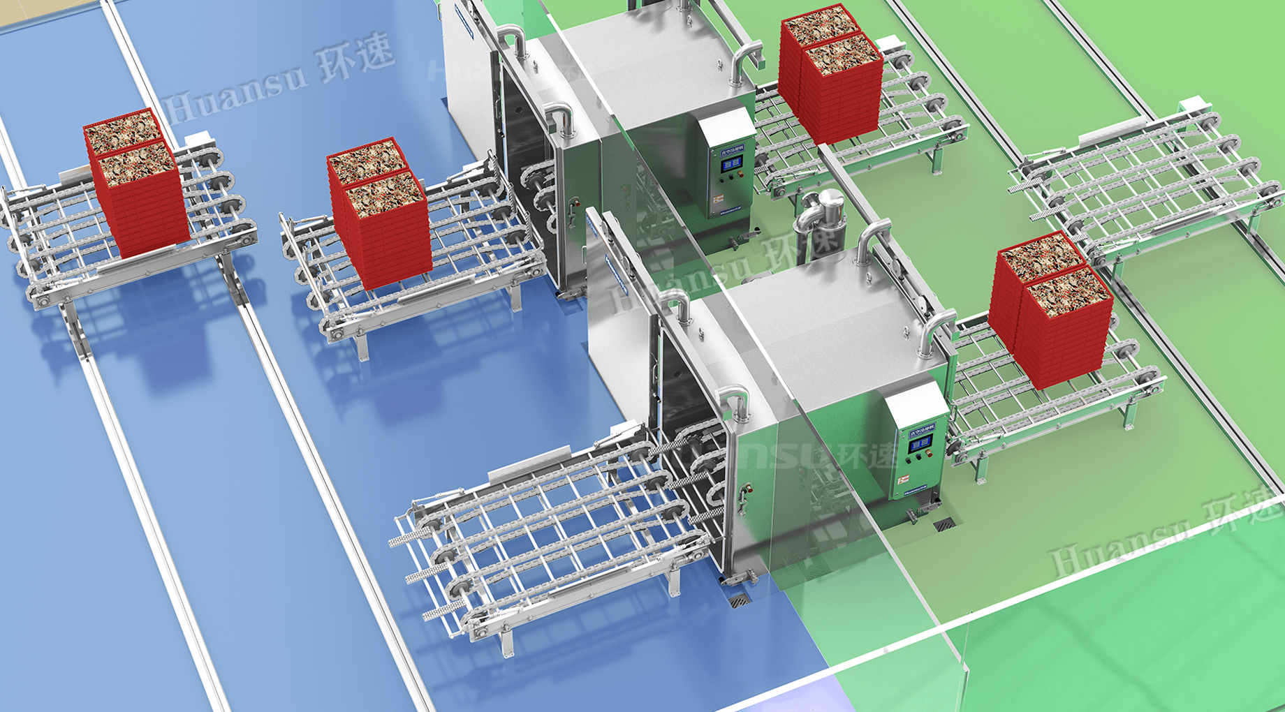 真空冷卻機使用控菌冷卻方式,將待冷卻食品從高溫降到常溫僅需3-10分鐘(因食材而定),降到10°C以下需8-18分鐘(因食材而定),冷卻后可按需求進行不同形式包裝,生產效率大幅度提高,產量成倍增長,1-2年收回成本。高效率的冷卻方式使冷卻后的食品品相更佳,同時防止細菌滋生、保質期延長,更衛(wèi)生!研發(fā)設計的智能湯汁冷卻系統(tǒng),可冷卻不同種類帶有湯汁的佳肴!